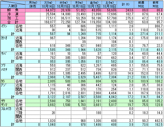 ◆水産物週間入荷情報/ダイジェスト版 2025年10月第3週号