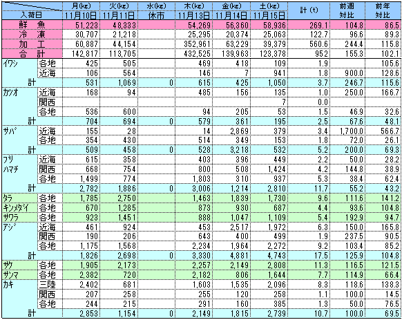 ◆水産物週間入荷情報/ダイジェスト版 2025年11月第3週号