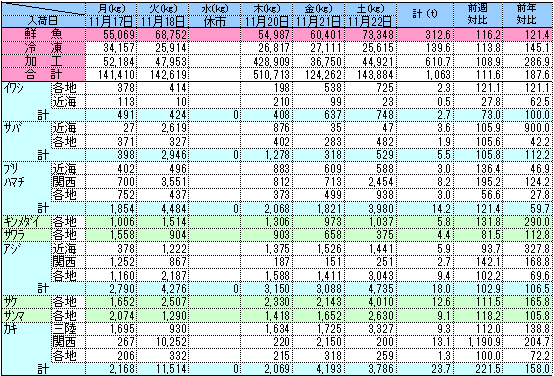 ◆水産物週間入荷情報/ダイジェスト版 2025年11月第4週号
