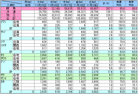 ◆水産物週間入荷情報/ダイジェスト版 2025年11月第5週号