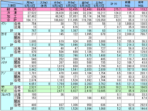 ◆水産物週間入荷情報/ダイジェスト版 2025年9月第4週号