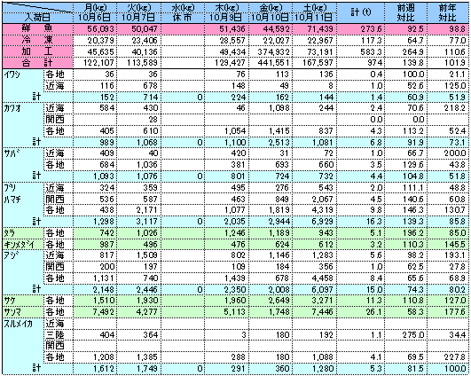 ◆水産物週間入荷情報/ダイジェスト版 2025年10月第2週号