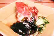 最後に煮汁だけを少し煮詰めて、器に盛ったきんめと若布にかければ、出来上がりです。